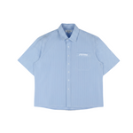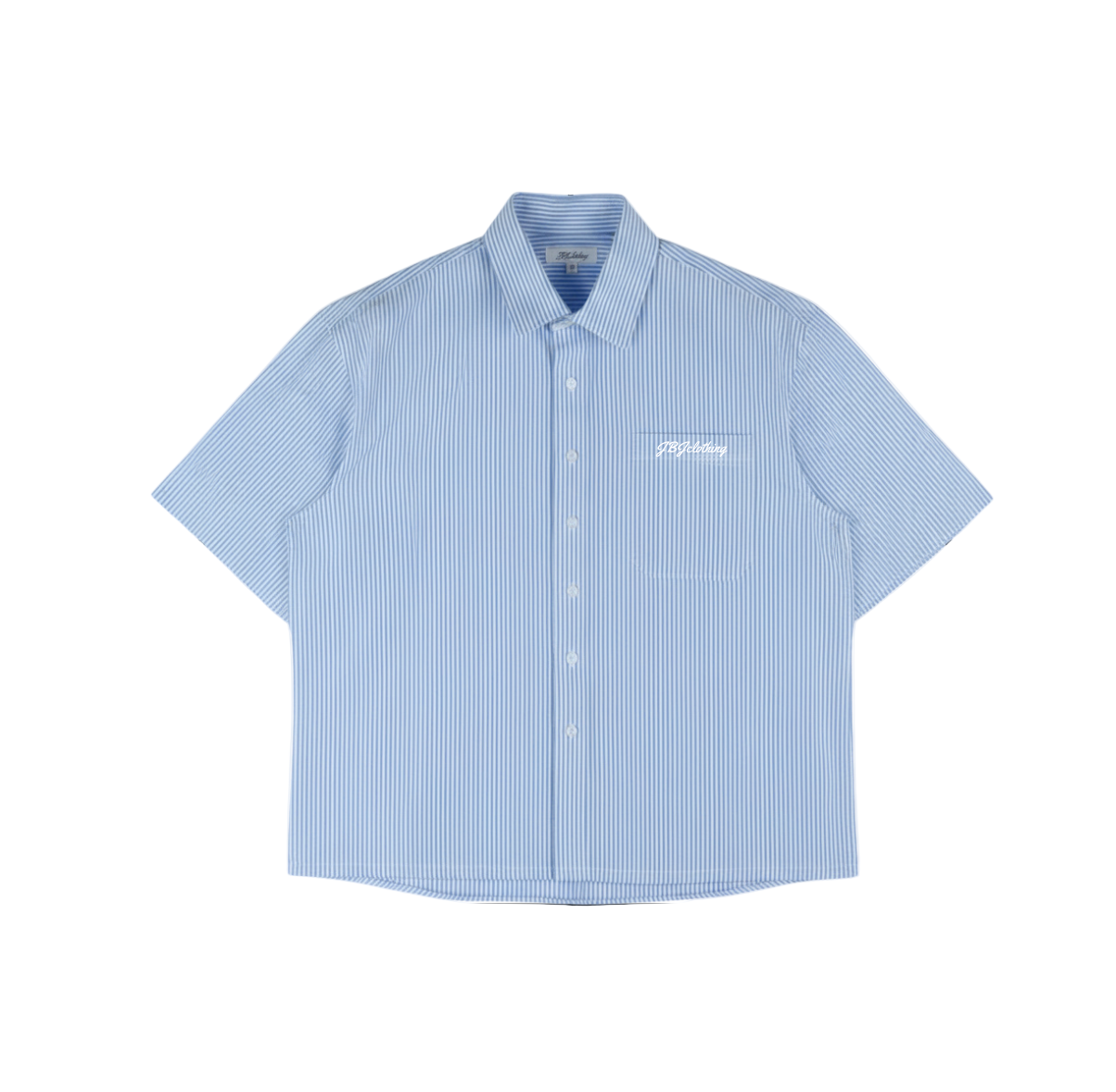 A modern take on a timeless classic. This striped short-sleeve shirt is designed in a relaxed oversized fit, perfect for layering over a basic tee or styling on its own. Crafted from lightweight cotton for everyday comfort, it combines effortless style with a clean minimal look. The blue and white pinstripes give it a fresh and versatile vibe, making it easy to dress up or down.