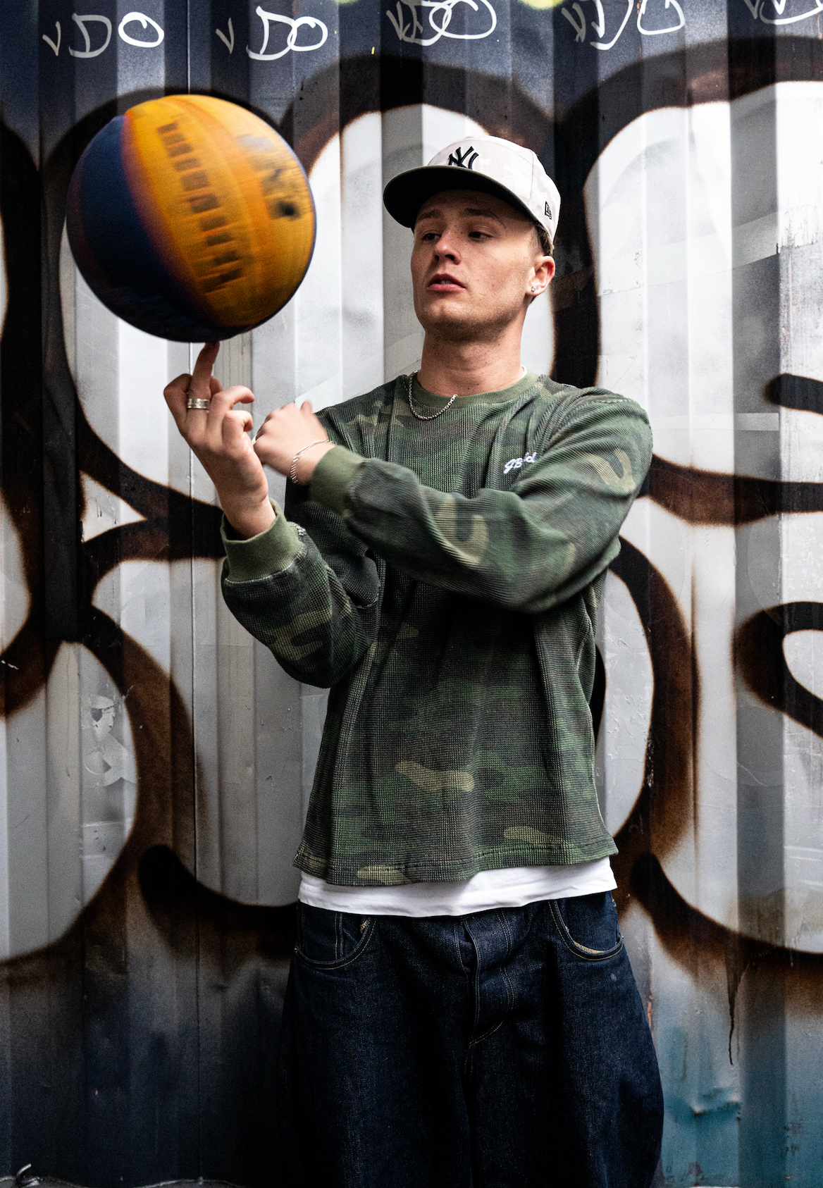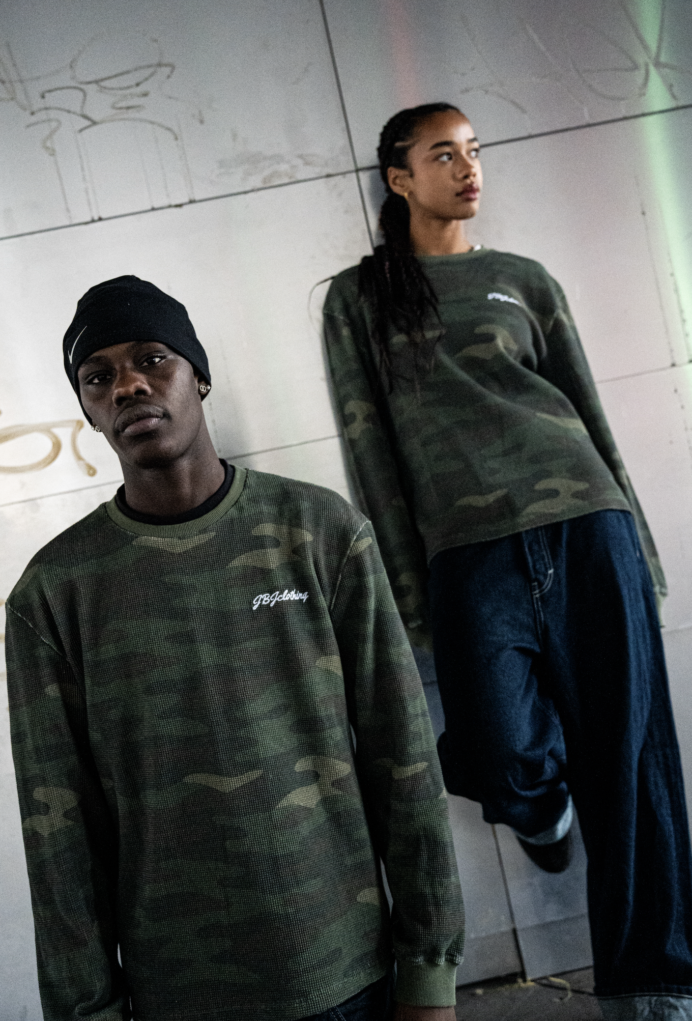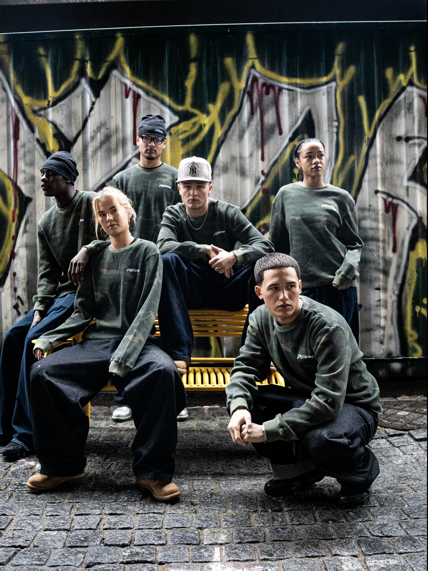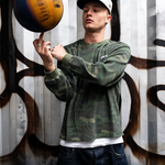 This waffle knit in green camo features a clean, comfortable fit with a great overall shape. The textured waffle fabric gives it a premium feel while keeping it soft and breathable. Designed in collaboration with Elley x Huess, it combines a modern look with everyday comfort — perfect for both casual wear and layering.